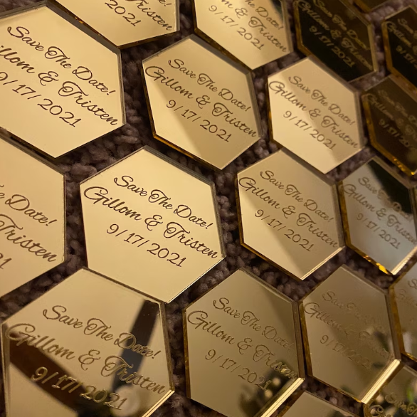 Save The Date Mirror Acrylic Magnet - 3 Line Designs